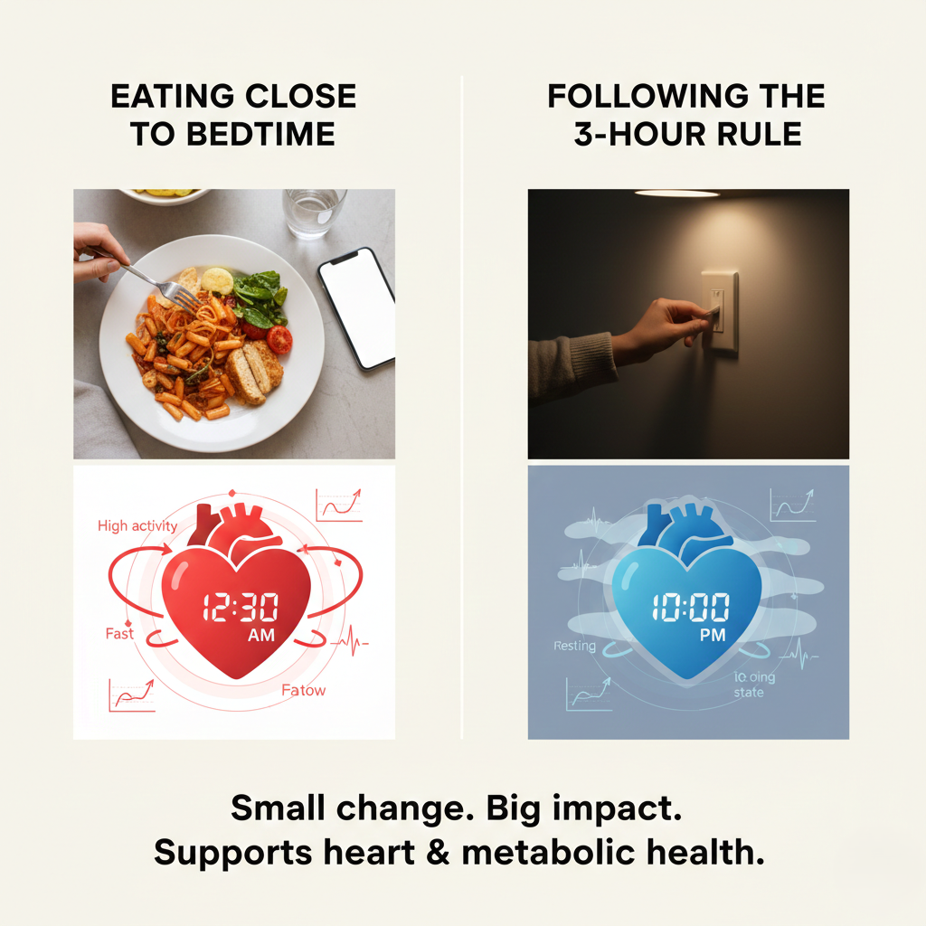 It means finishing your last meal at least three hours before sleeping to support heart and metabolic health.
